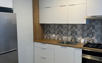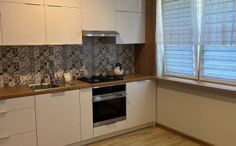 Wszystkie sprzęty nowe: płyta indukcyjna, okap kuchenny, zmywarka, piekarnik elektryczny.