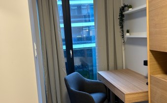Składa się z salonu z aneksem kuchennym, sypialni z miejscem do pracy i dużej łazienki z prysznicem.
